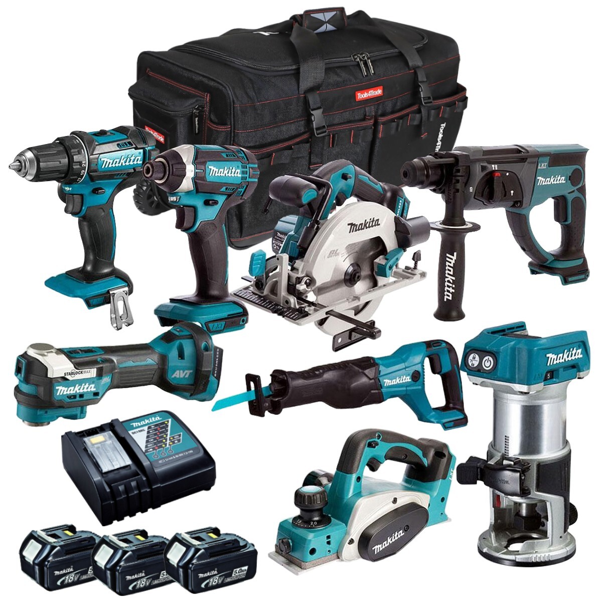 Makita 18V LXT 8 Piece Power Tool Kit 3 x 5.0Ah Battery Charger Bag T4TKIT-12996