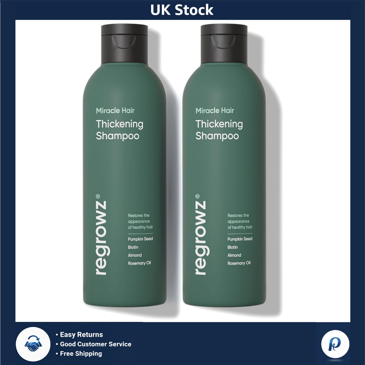 Regrowz Hair Thickening Shampoo 225ml & Hair Volume Conditioner 200ml - Biotin Hair Growth Shampoo and Conditioner for Women & Men - DHT Blocker & Sulphate Free - Restore Stronger & Healthier Hair