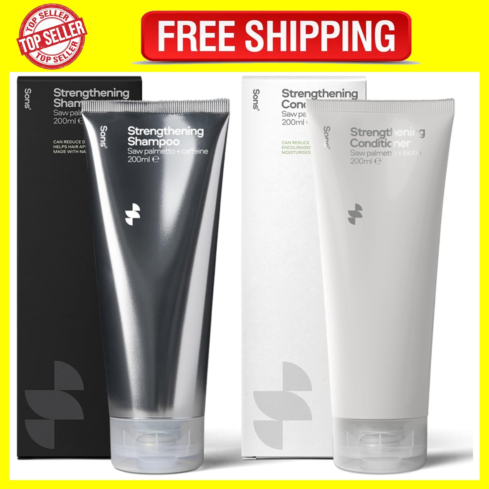 Sons Shampoo & Conditioner for Men. DHT-blocker, Hair Thickening and Anti-Dandruff With Caffeine. Tackles Hair Loss, Thinning & Dry Scalp. Promotes Hair Growth. 1 month Supply. Made in Europe.