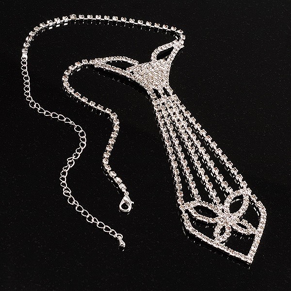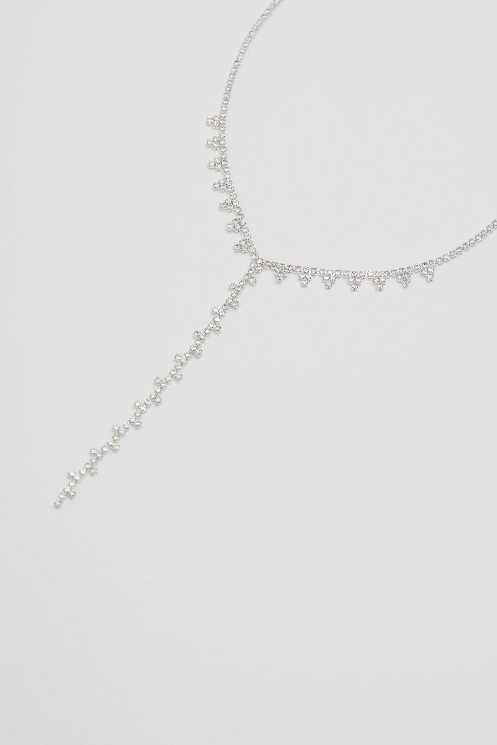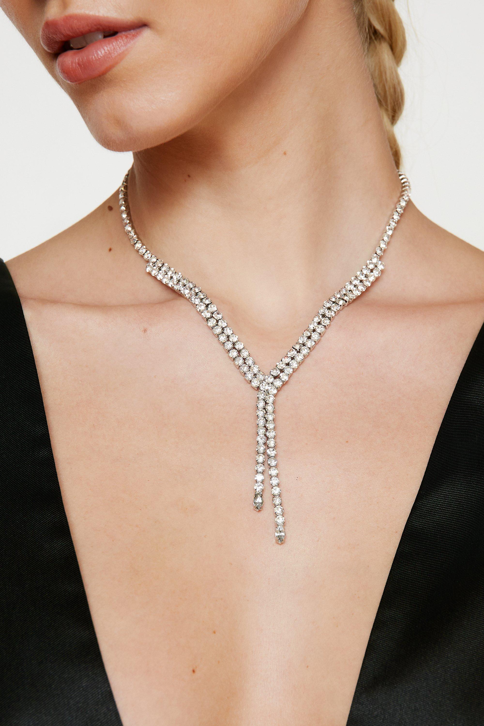 Scarf Shape Crystal Diamante Silver Necklace And Earrings Set Costume Jewellery