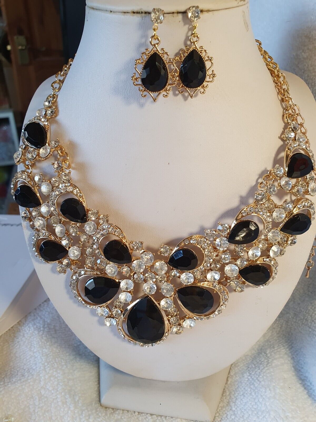 Black & silver colour Diamante Necklace & earrings set wedding prom new