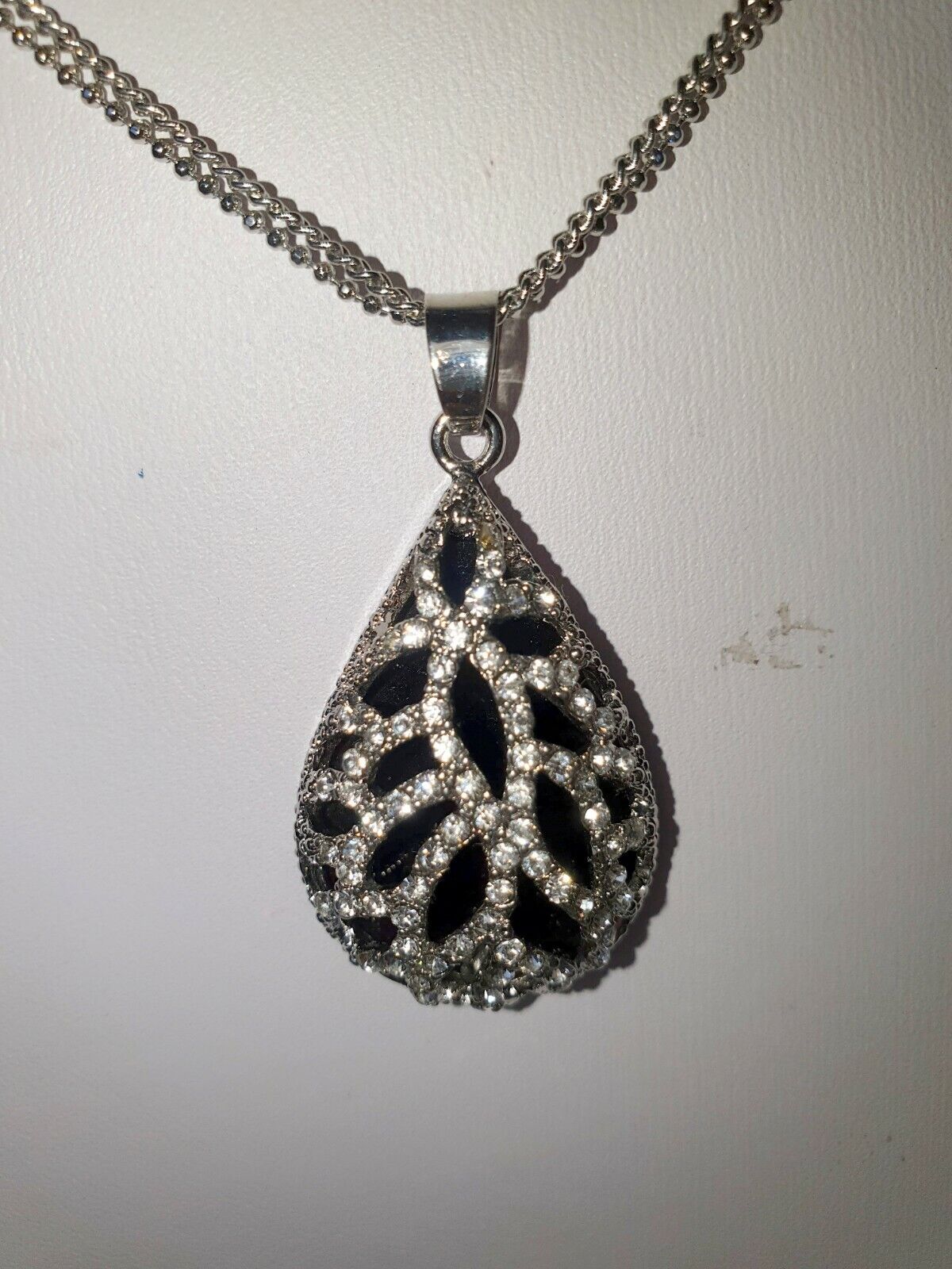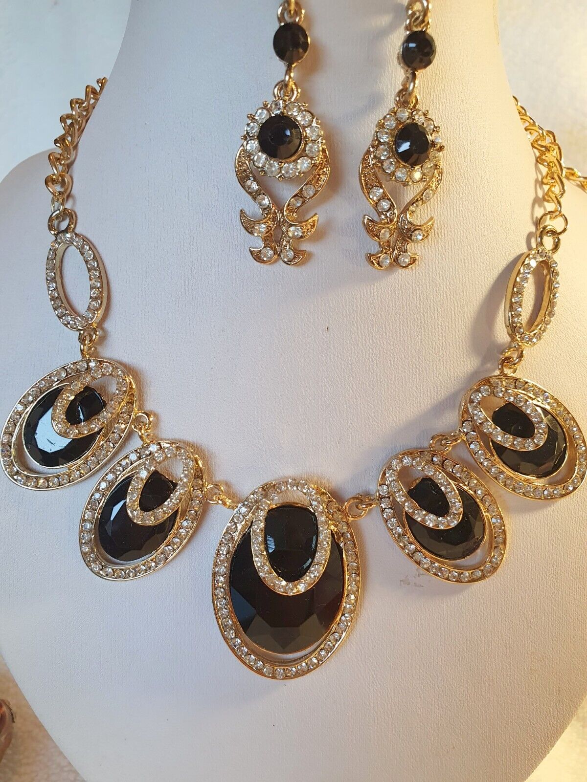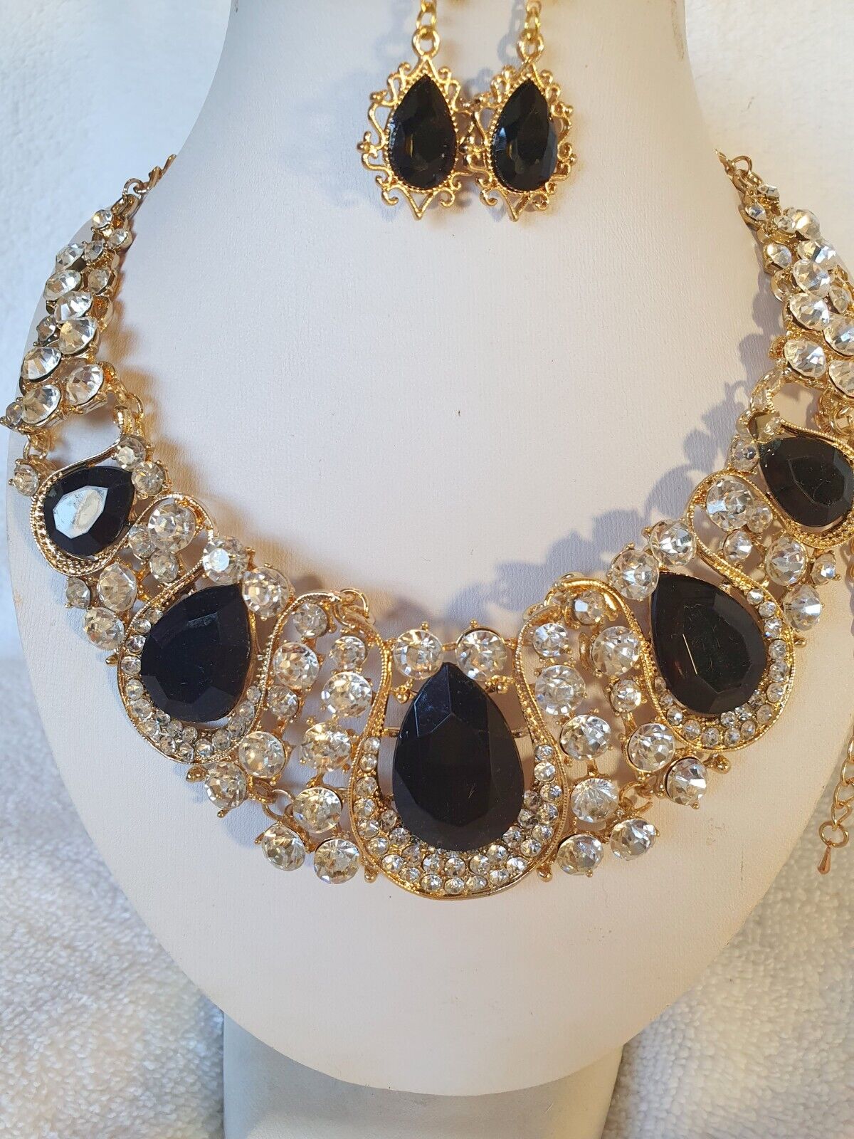 Black & Silver colour Diamante Necklace & earrings set Silver colour chain