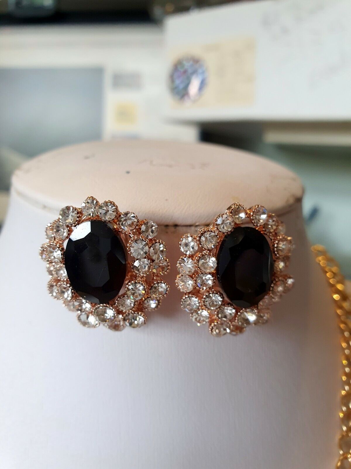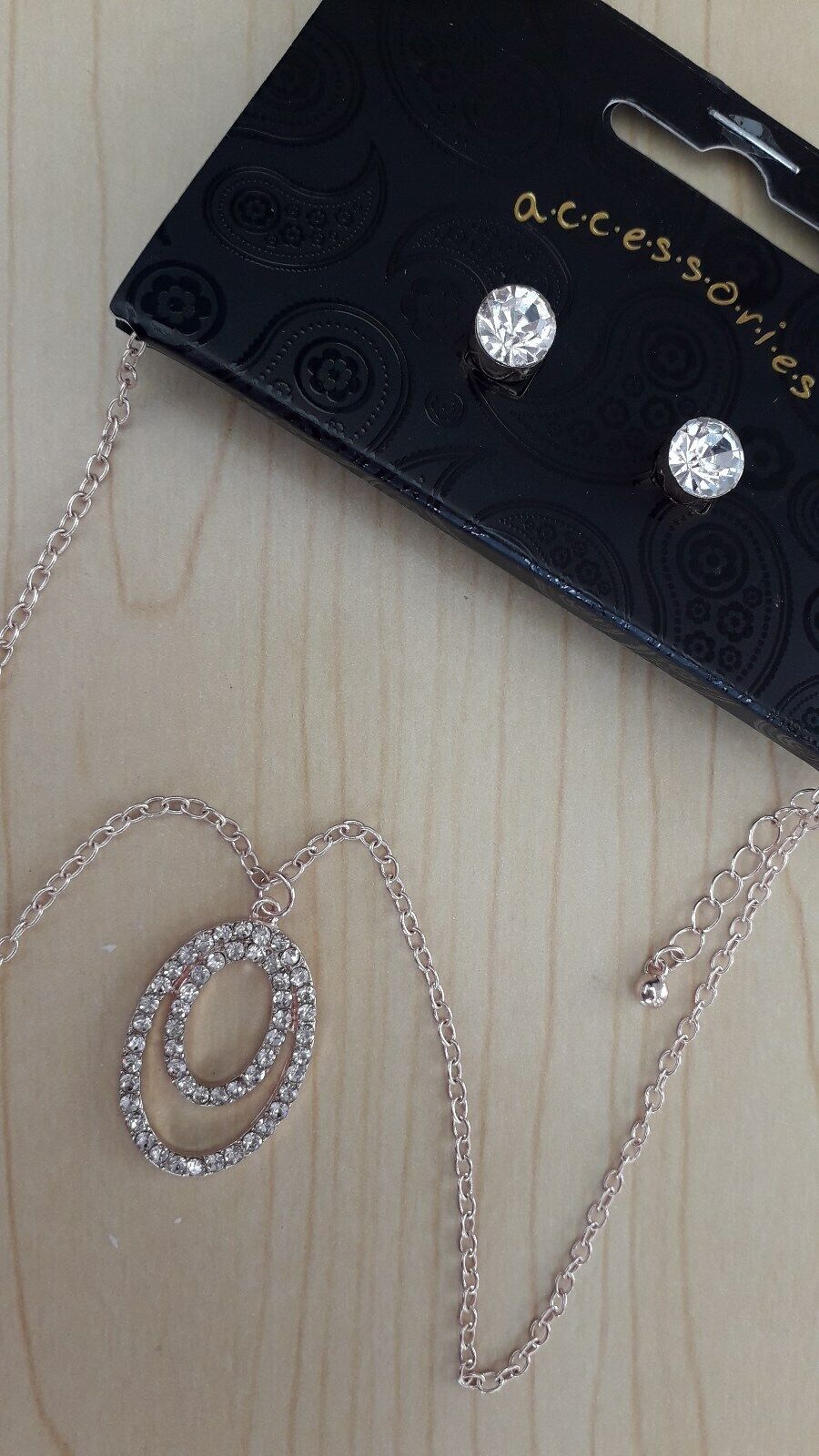 BNWT Accessories Gold Tone Chain/Diamante Oval Design Necklace/Stud Earrings