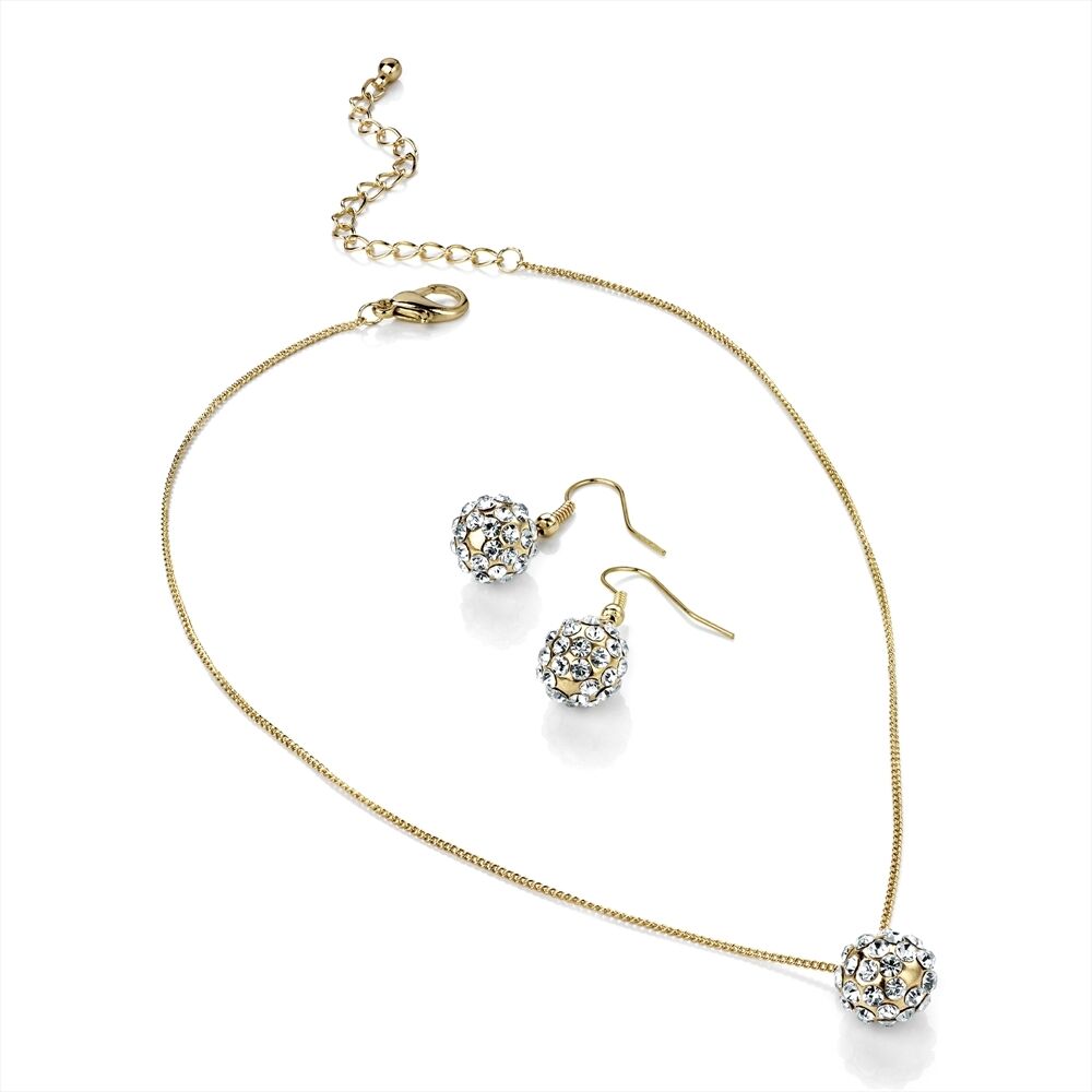 SALE REDUCED TO CLEAR Diamante Ball Pendant Necklace & Earring Set Gold Colour
