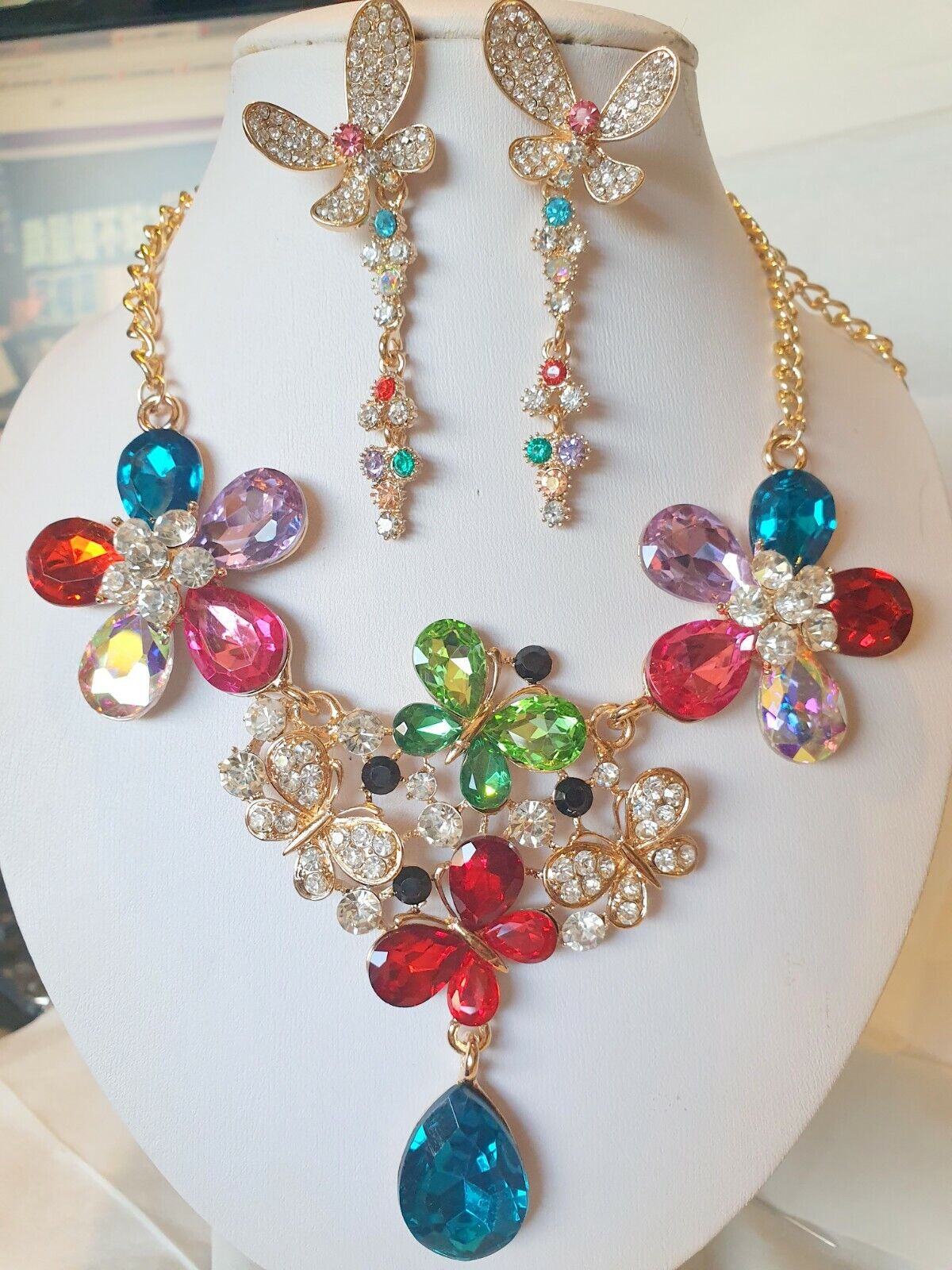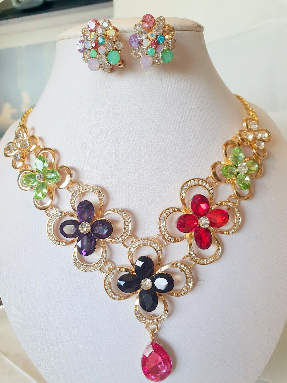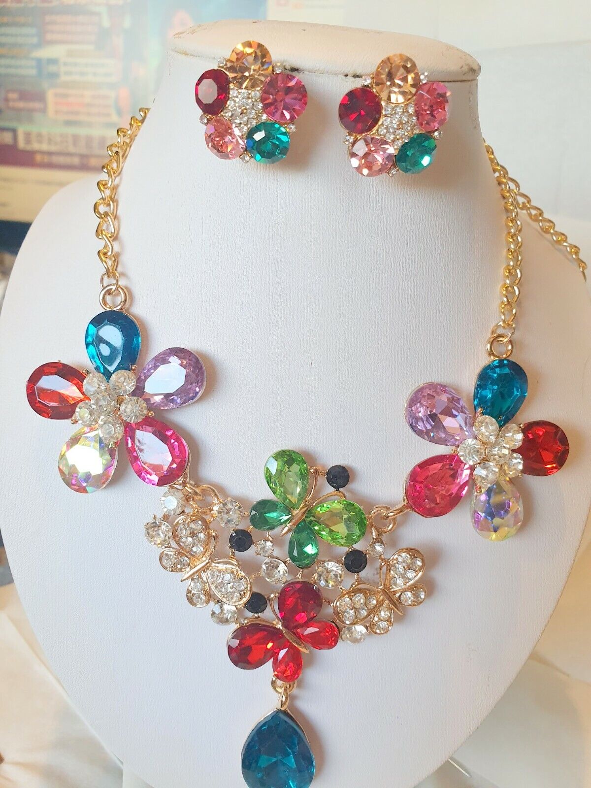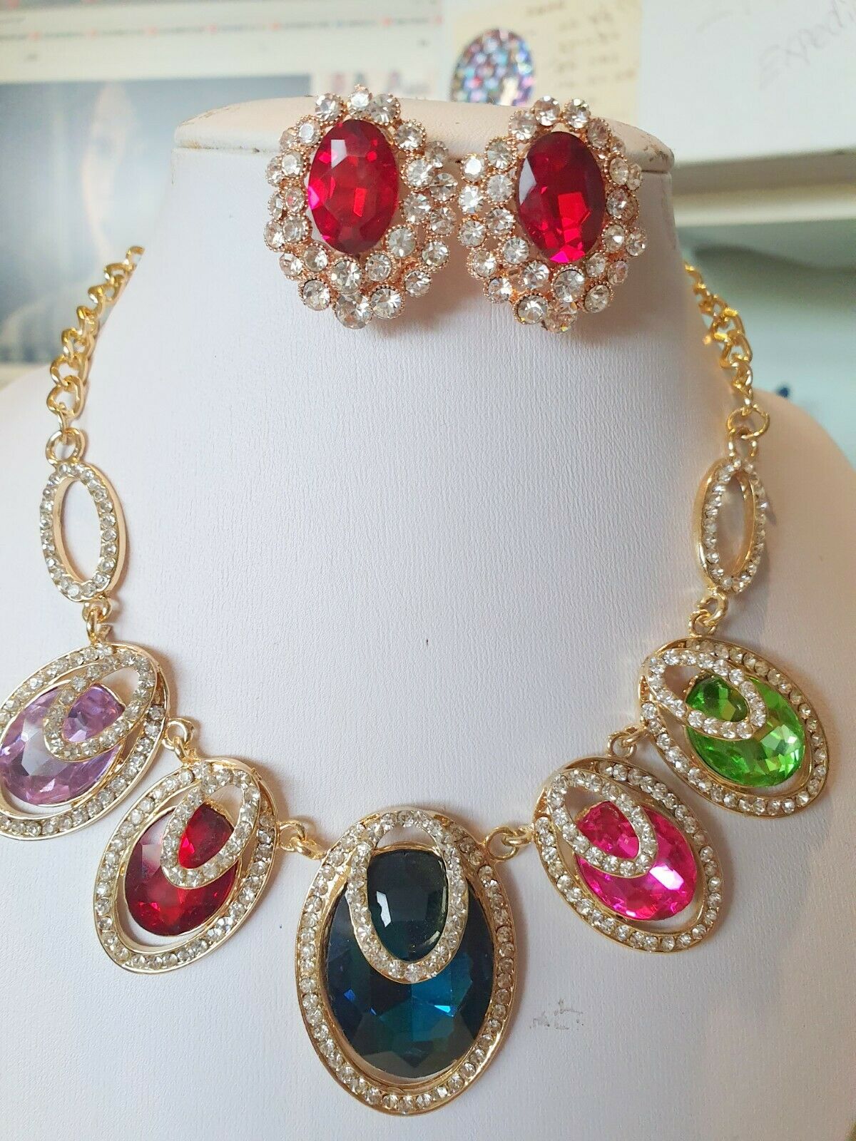 mixed color Diamante crystal Necklace & earrings set wedding prom new set