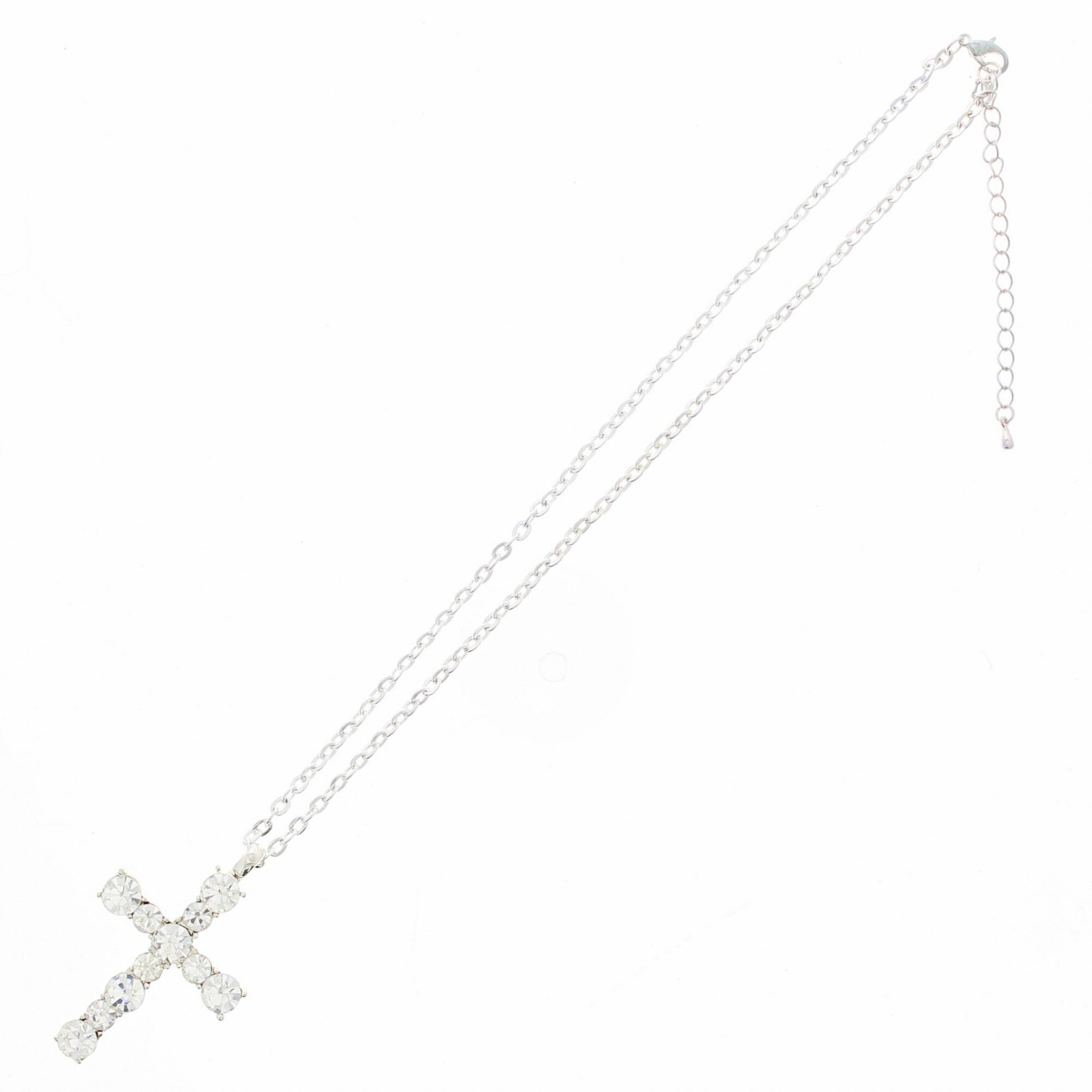 Diamante Stone Cross Necklace - Silver Chain for Women Crystal Cubic Zirconia