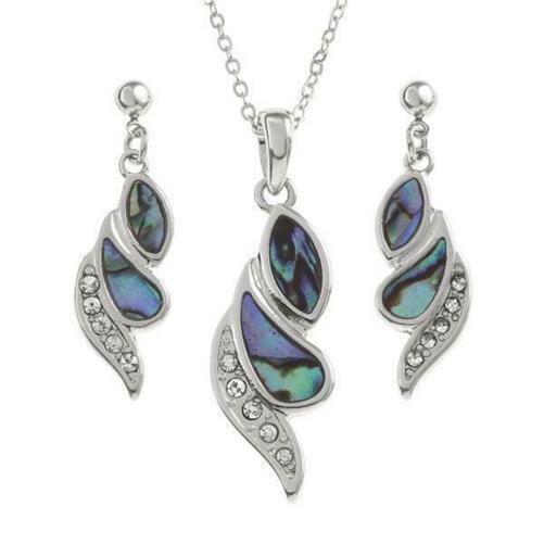 Tide Jewellery Inlaid Paua Shell Diamante Twist Necklace & Dangly Earring Set