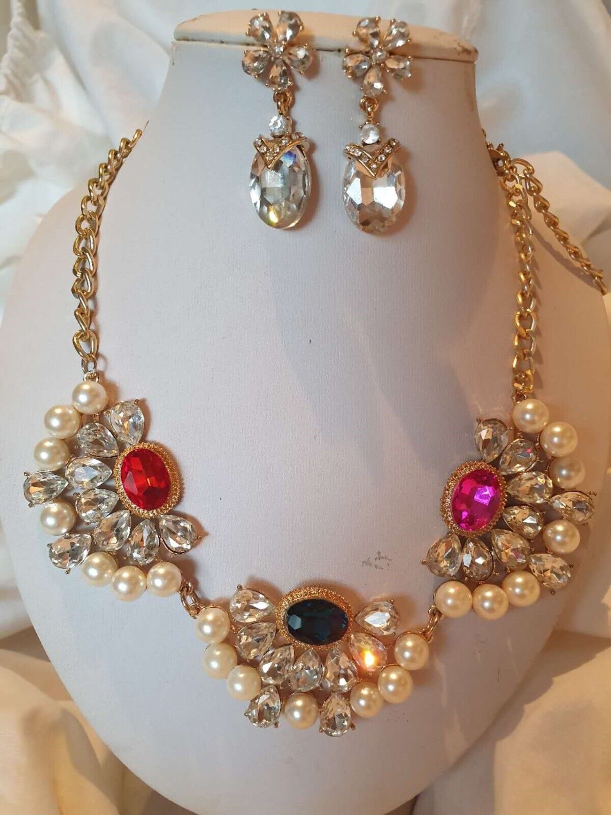 mixed colour Diamante crystal Necklace & earrings set wedding prom set