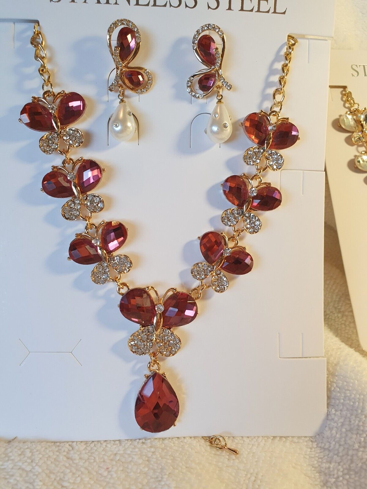 mixed color Diamante crystal Necklace & earrings set wedding prom new set lot 7