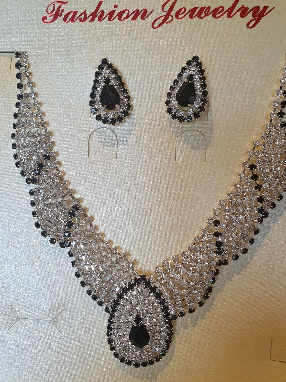 Black&white color Diamante crystal Necklace&earrings set wedding prom new set 1