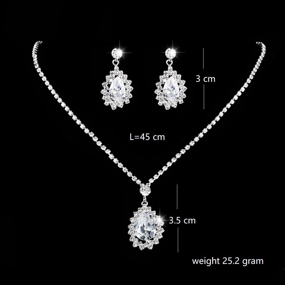 Bridal Jewellery Set Teardrop Diamante Necklace Crystal Drop Dangle Earrings Rhinestone Bracelet Wedding Silver Jewellery Set Prom Costume Jewelry for Women Girls Wedding Party