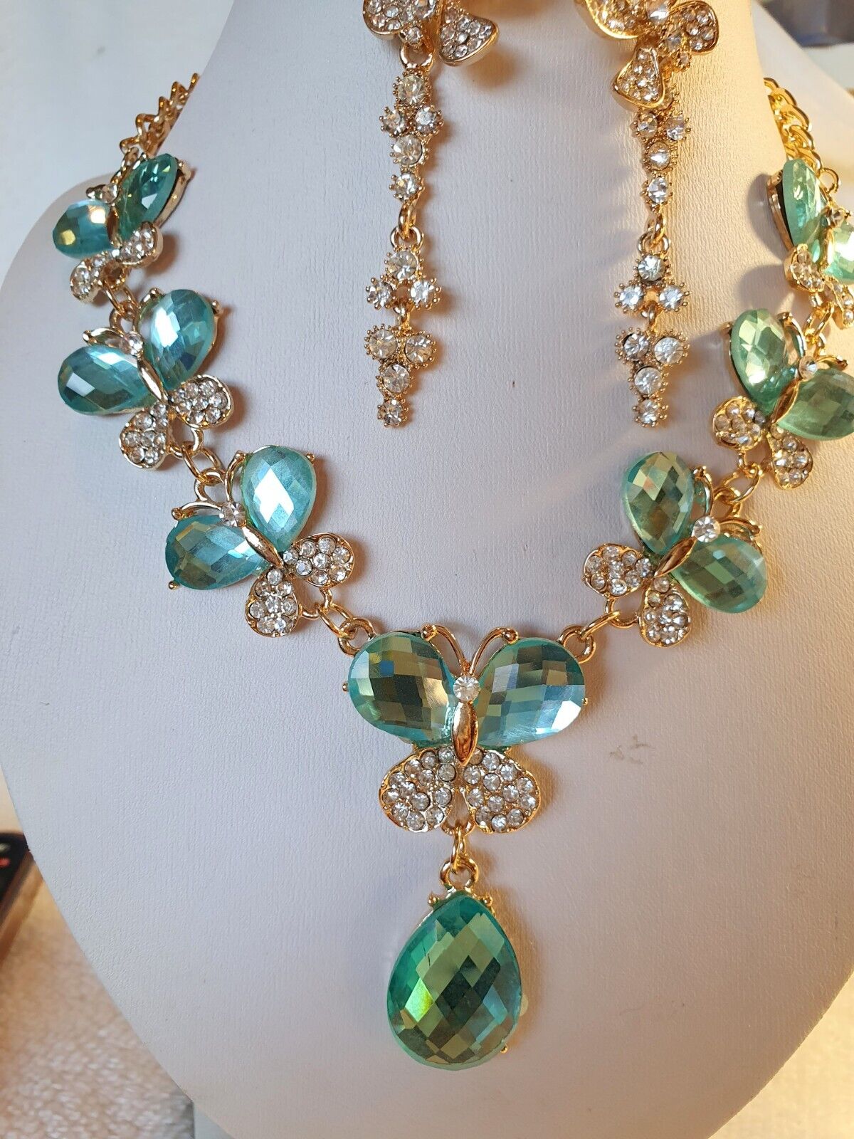 Turquoise blue colour Diamante crystal Necklace & earrings set wedding prom set