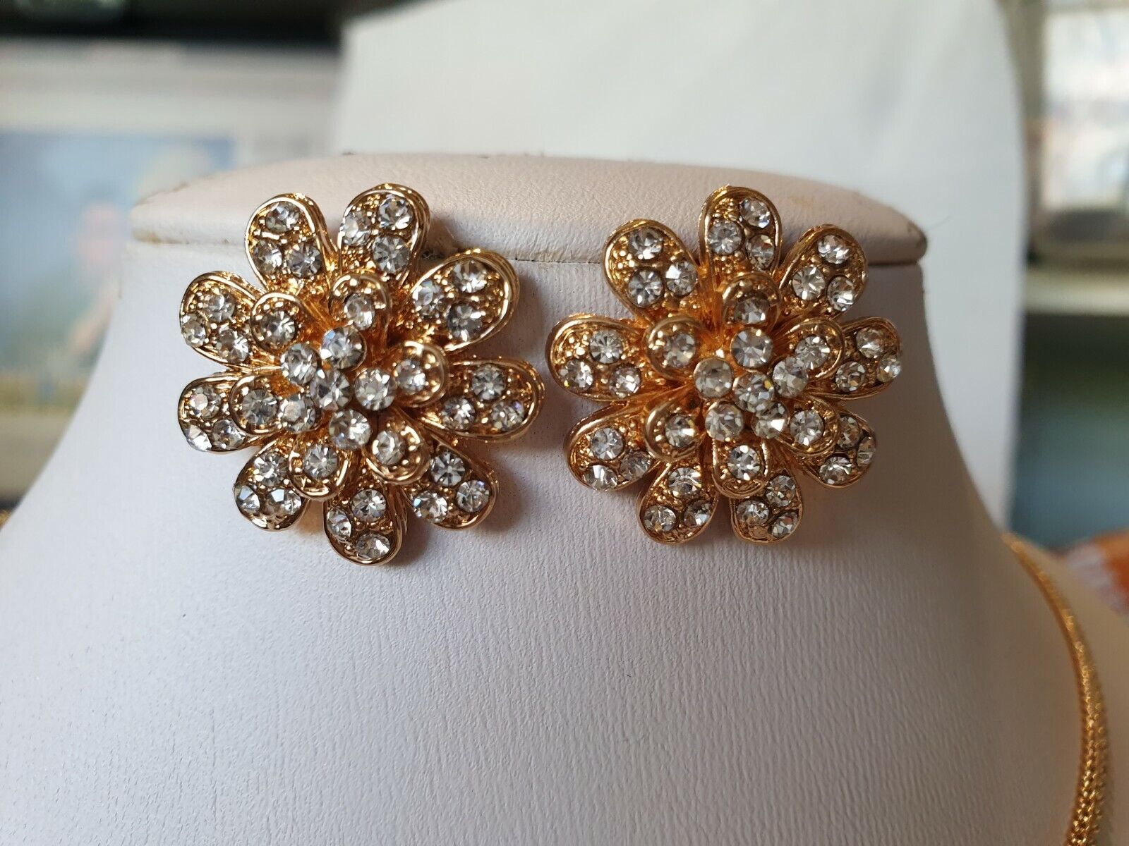 flower design gold colour Diamante Necklace & earrings set wedding prom new set