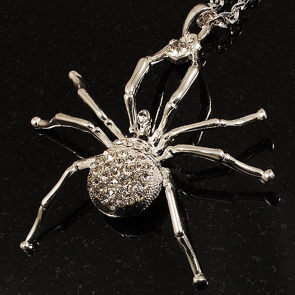 Shimmering Diamante Spider Pendant Necklace (Silver Tone Finish) - 60cm Length