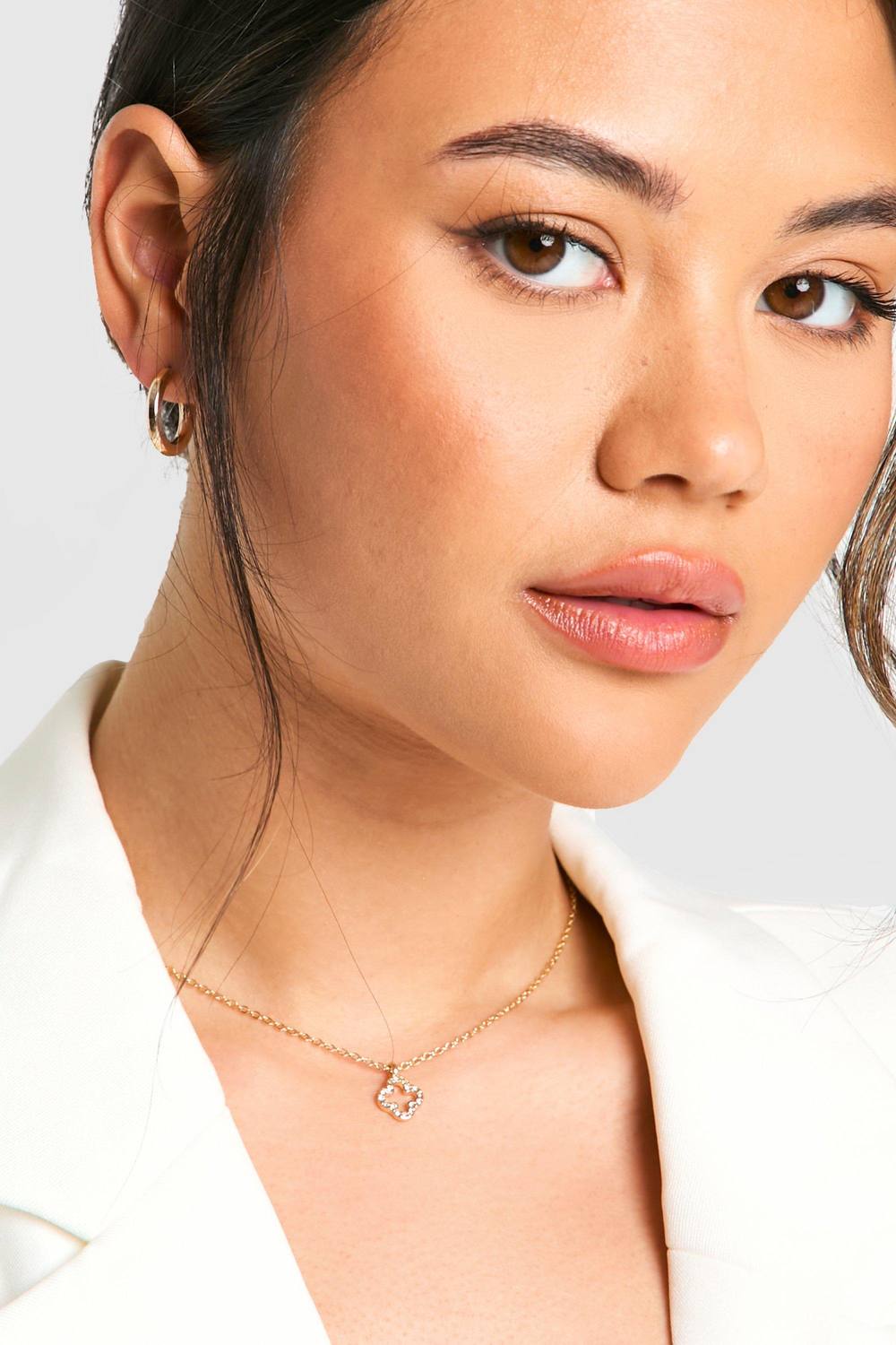 Womens Diamante Clover Necklace - Gold - One Size, Gold