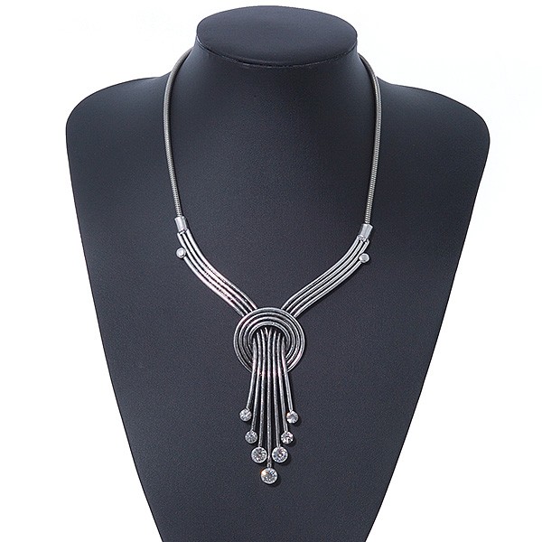 Vintage Burn Silver Diamante 'Knot' Necklace - 42cm Length/ 6cm Extender