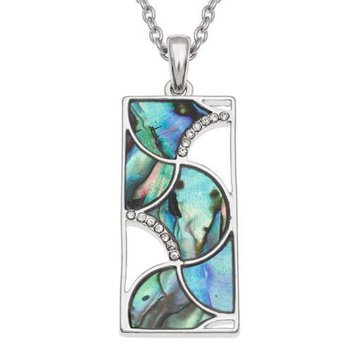 Tide Jewellery Inlaid Paua Shell & Diamante Rectangle Necklace Pendant