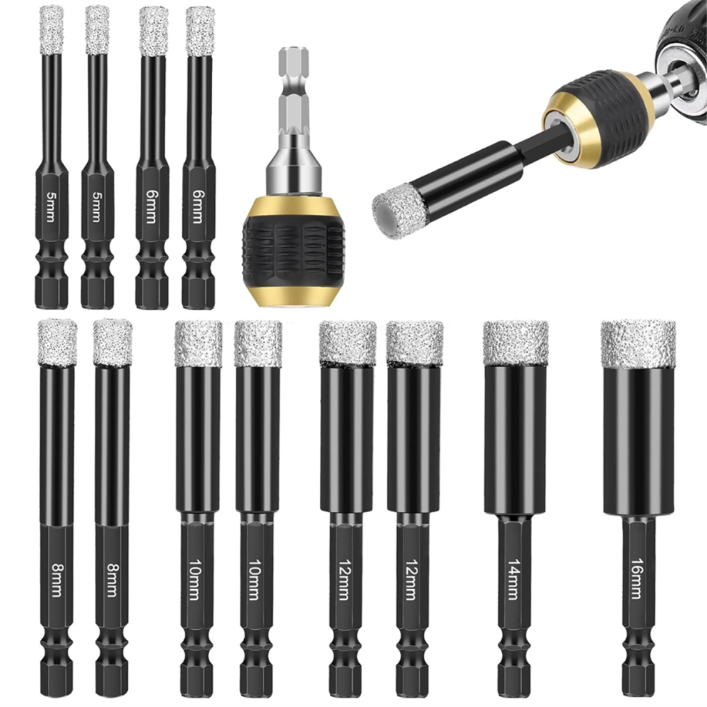 Diamond Drill Bits Set, 12Pcs Dry Hole Saw with Quick Change Bit Holder,for Porcelain Tile Glass Ceramic