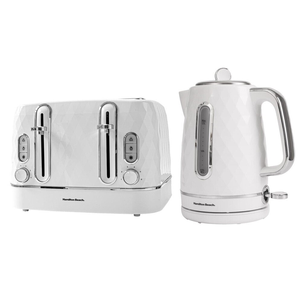 Hamilton Beach, Electric Kettle & Toaster Set, Diamond Collection, White, HB8393221WST