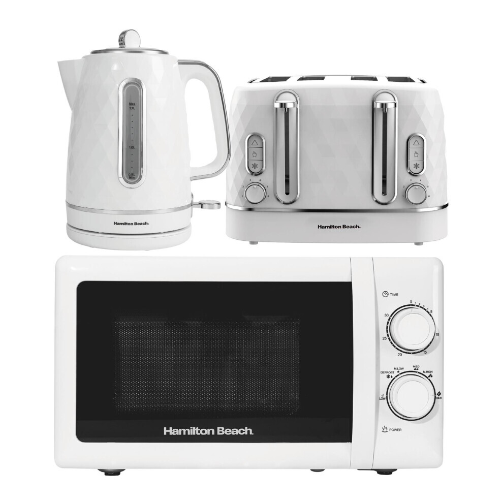 Kettle, Toaster & Microwave Set, Diamond Collection by Hamilton Beach, White