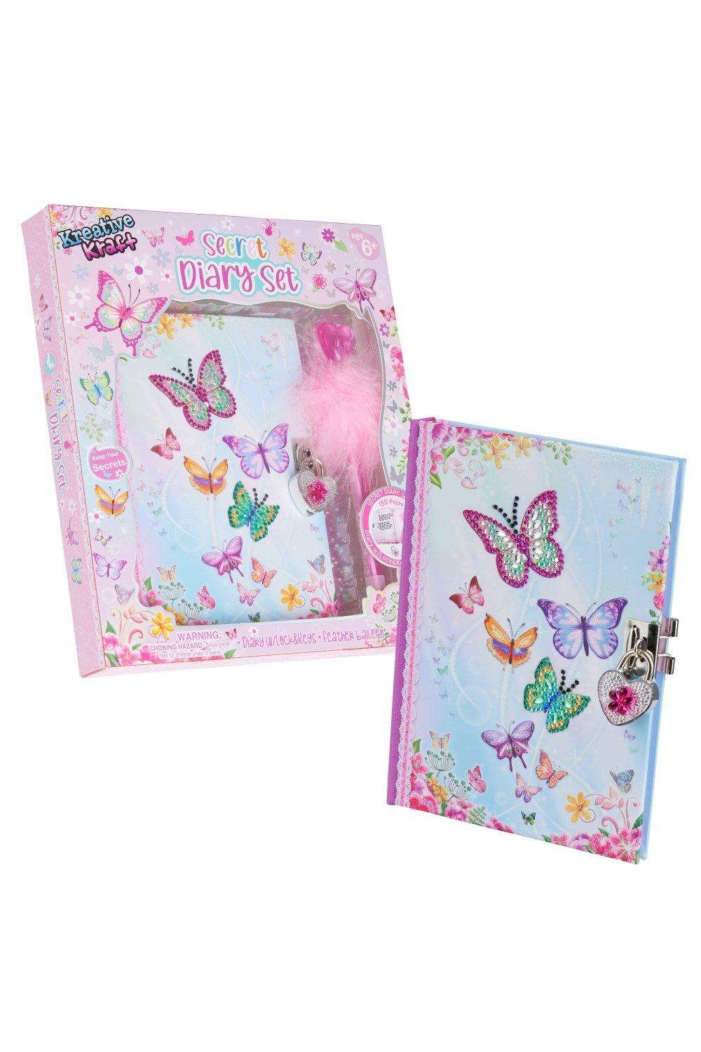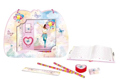 Atoz Girls' Secret Diary Set with Lock, Butterfly Design, Includes Notebook, Ruler, Pencils and Stationery Accessories