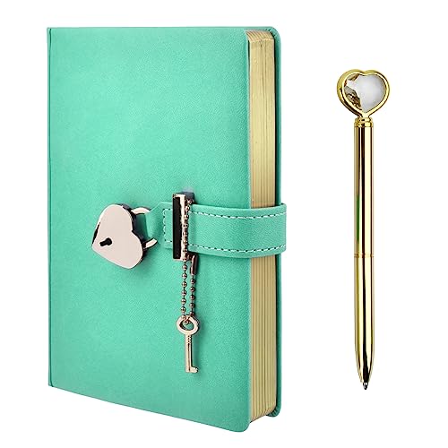 Diary with Lock and Key, Heart Shaped Lock Notebook with Lock, Secret Diary for Girls, Lockable Notebook, Girls Diary, Journal Secret Planner Notebook Gift for Women Girls - Green