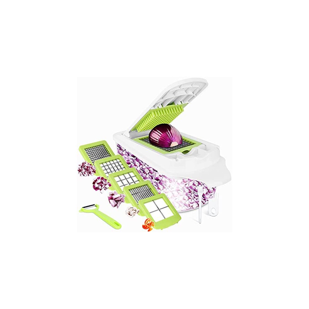 Vegetable Cutter 12 Pieces Fruit Cutter Vegetable Chopper Onion Dicer Food Chopper Dicer with Container, Peeler, Cleaning Brush