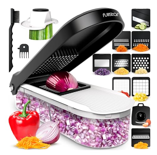 Fullstar Vegetable Chopper & Mandoline Slicer - Julienne Cutter Dicer Grater for Food Veg Onion Cucumber Tomato Salad Potato Cheese - Kitchen Gadgets & Accessories (PRO 8-in-1, White)