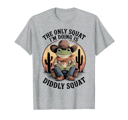 Country Cowboy Frog Rodeo Cowgirl Funny Western Diddly Squat T-Shirt, Men, Heather Grey, Small