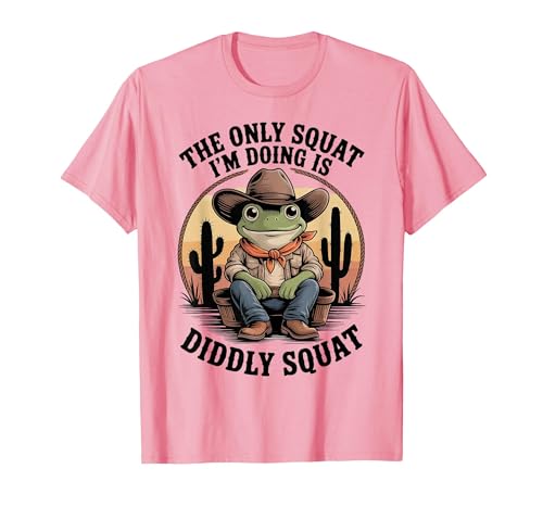 Country Cowboy Frog Rodeo Cowgirl Funny Western Diddly Squat T-Shirt, Men, Pink, Medium