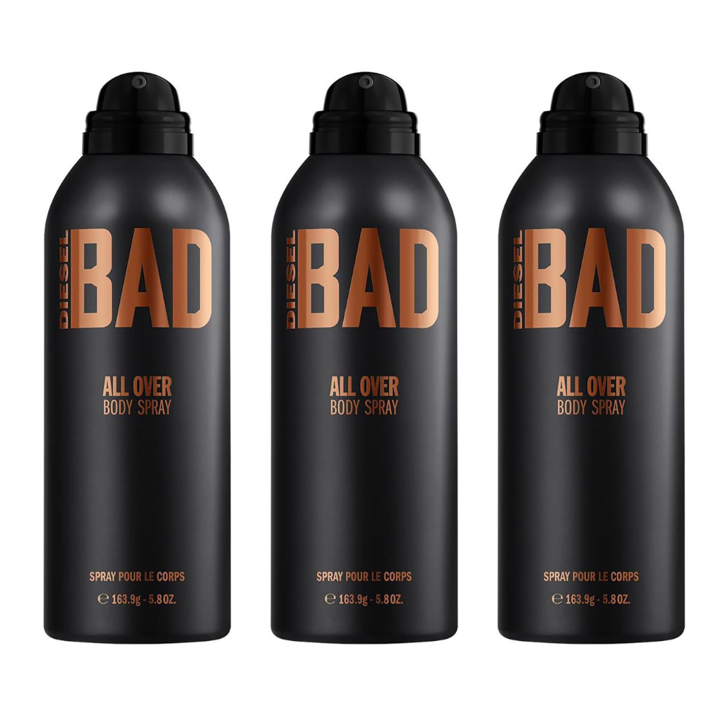 3 x DIESEL BAD BODY SPRAY 200ML MENS BODY PERFUME FOR HIM FREE DELIVERY