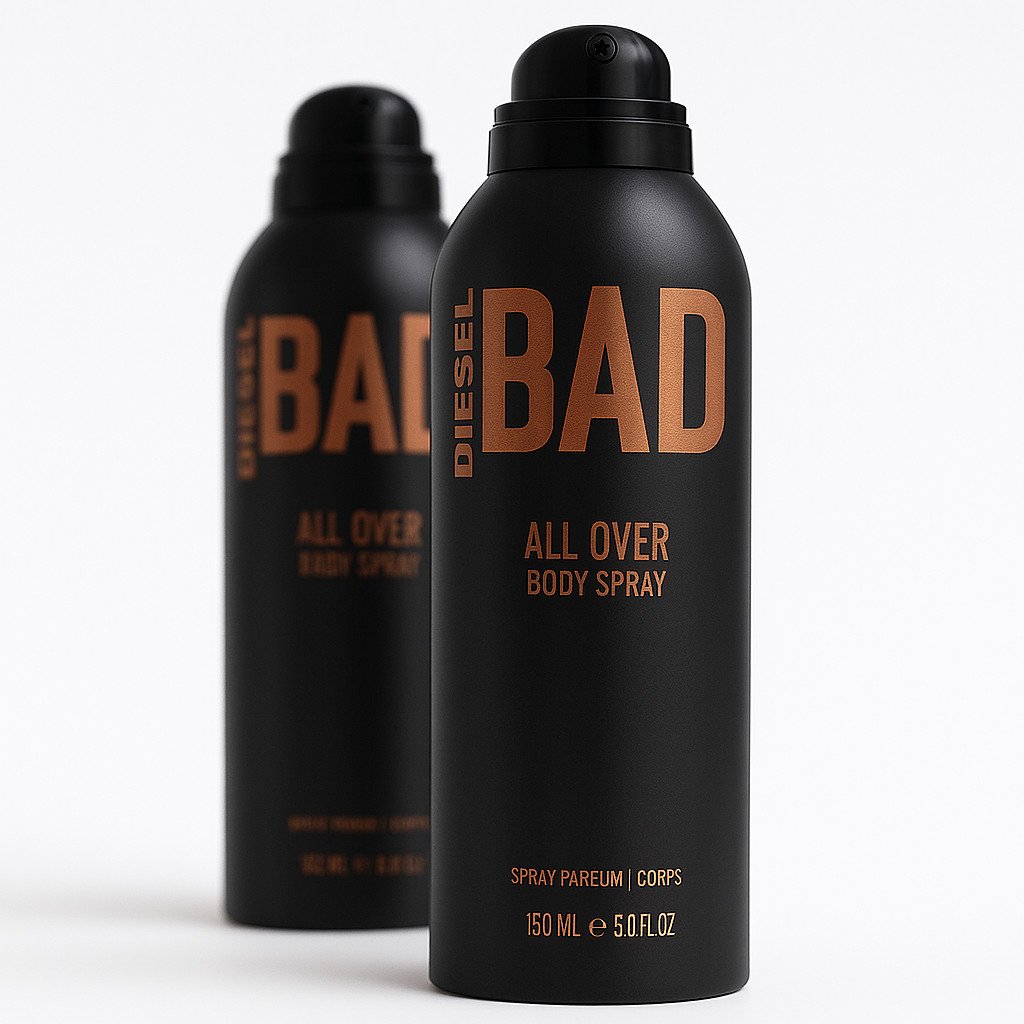 Diesel BAD & Only The Brave All Over Body Spray for Men 200ml Pack of 2 New