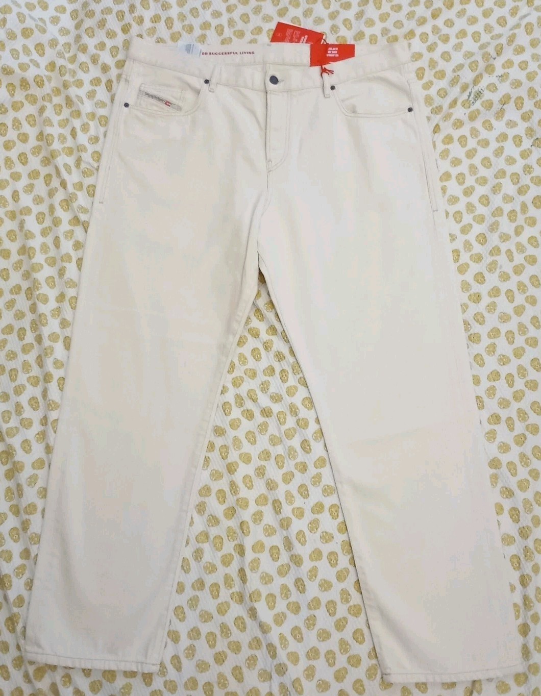 Diesel D-VIKER Men's Jeans Cream Straight Fit 09B95 32W 32L RRP £190