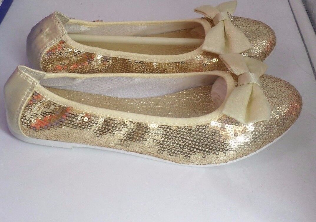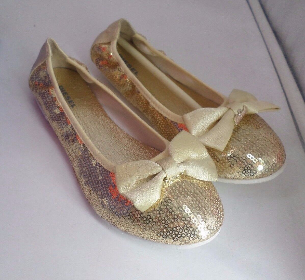 Diesel Kids Paillette Flat Ballet Shoes Gold UK 2.5 EU 35 CH06 84 SALEs