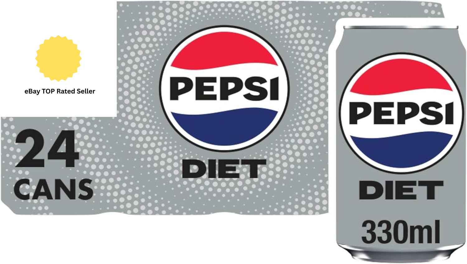 Pepsi Diet Cola Cans - 24 x 330ml, Zero Calories & Sugar, Vegetarian/Vegan Friendly Sparkling Diet Cola