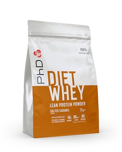 PhD Nutrition Diet Whey Low Calorie Protein Powder, Low Carb, High Protein Lean Matrix, Salted Caramel Diet Whey Protein Powder, High Protein, 62 Servings Per 2 kg Bag [Packing May Vary]