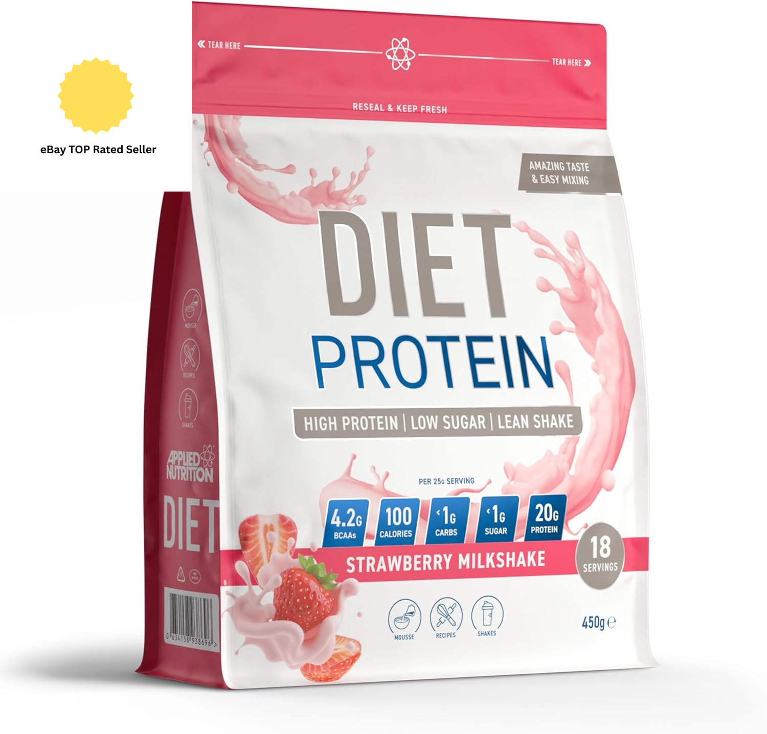 Applied Nutrition Diet Whey - High Protein Powder Supplement, Low Carb & Sugar, for Weight Management with CLA, L Carnitine, Green Tea (450g - 18 Servings) (Strawberry Milkshake)