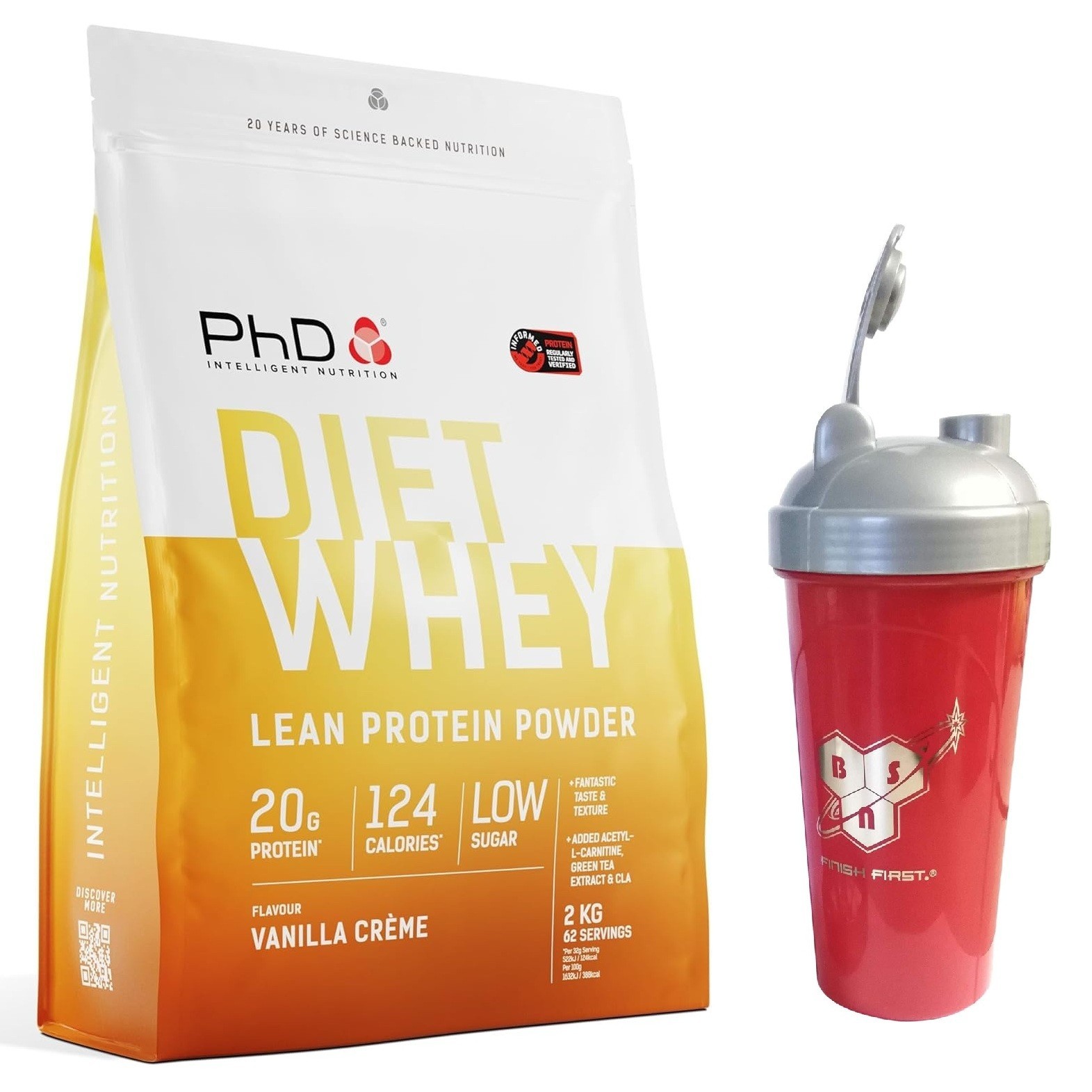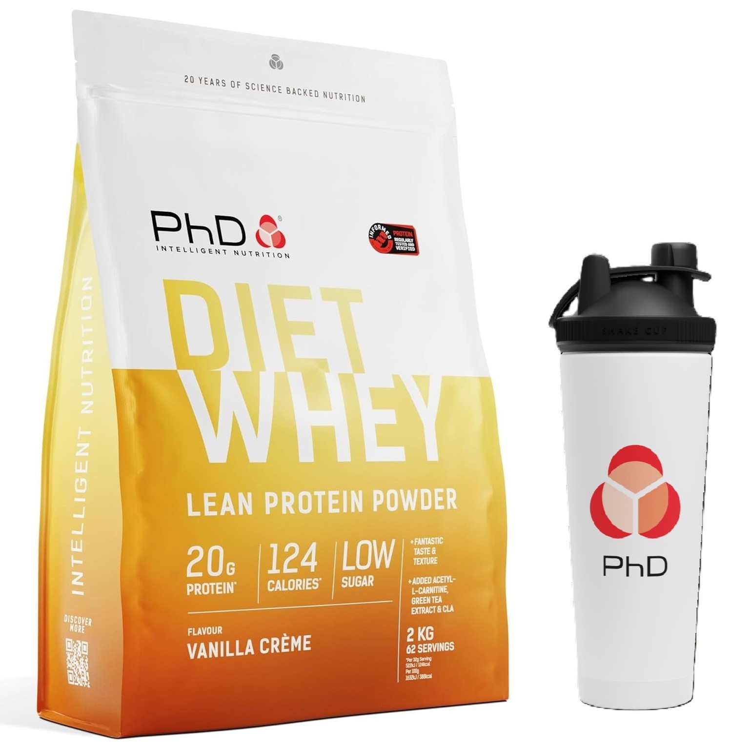 PhD Diet Whey Protein Powder Shake Vanilla Crème 2kg + PhD Shaker BBD 08/25