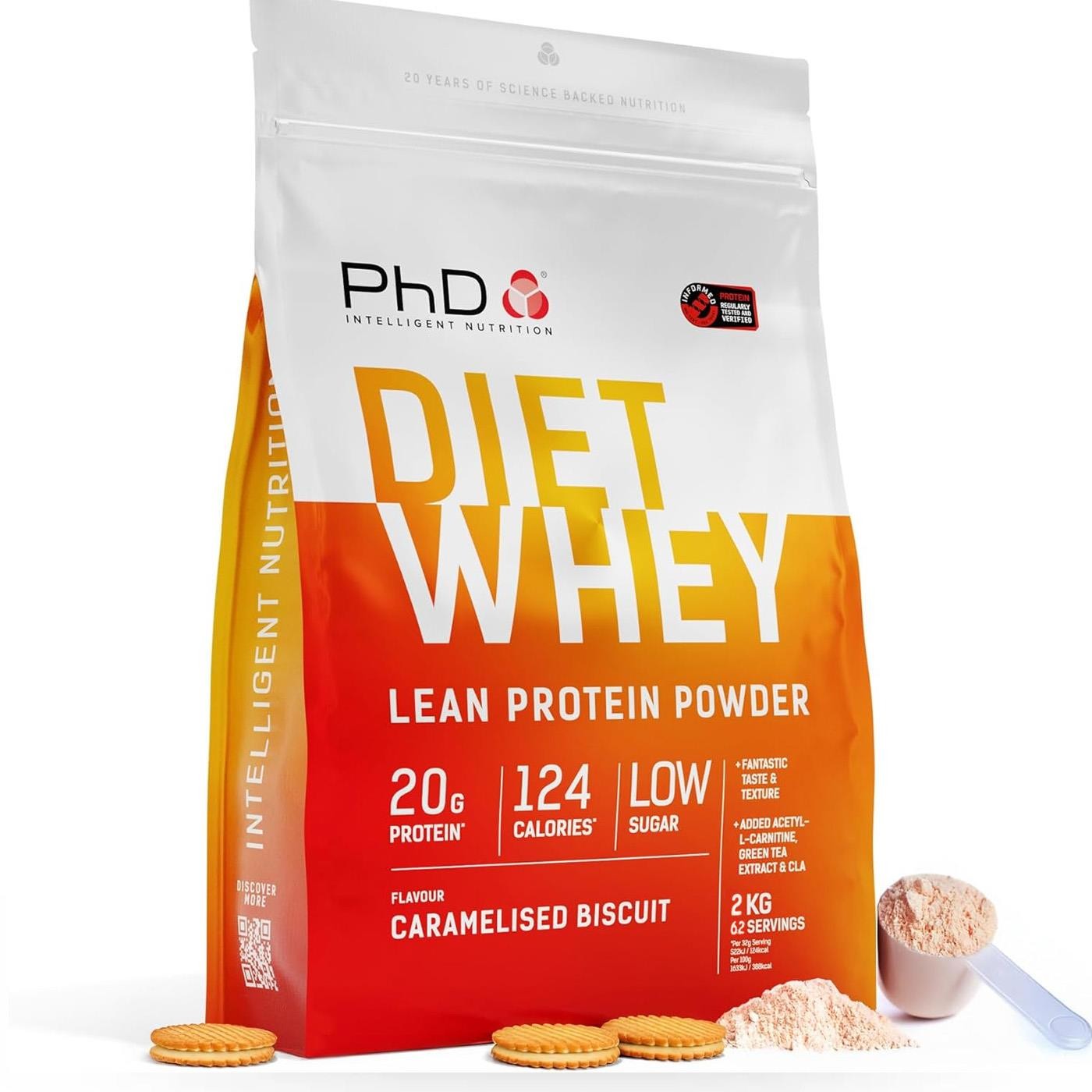 PHD Diet Whey Protein Powder Blend Shake Caramelised Biscuit Flavour Pack 2kg
