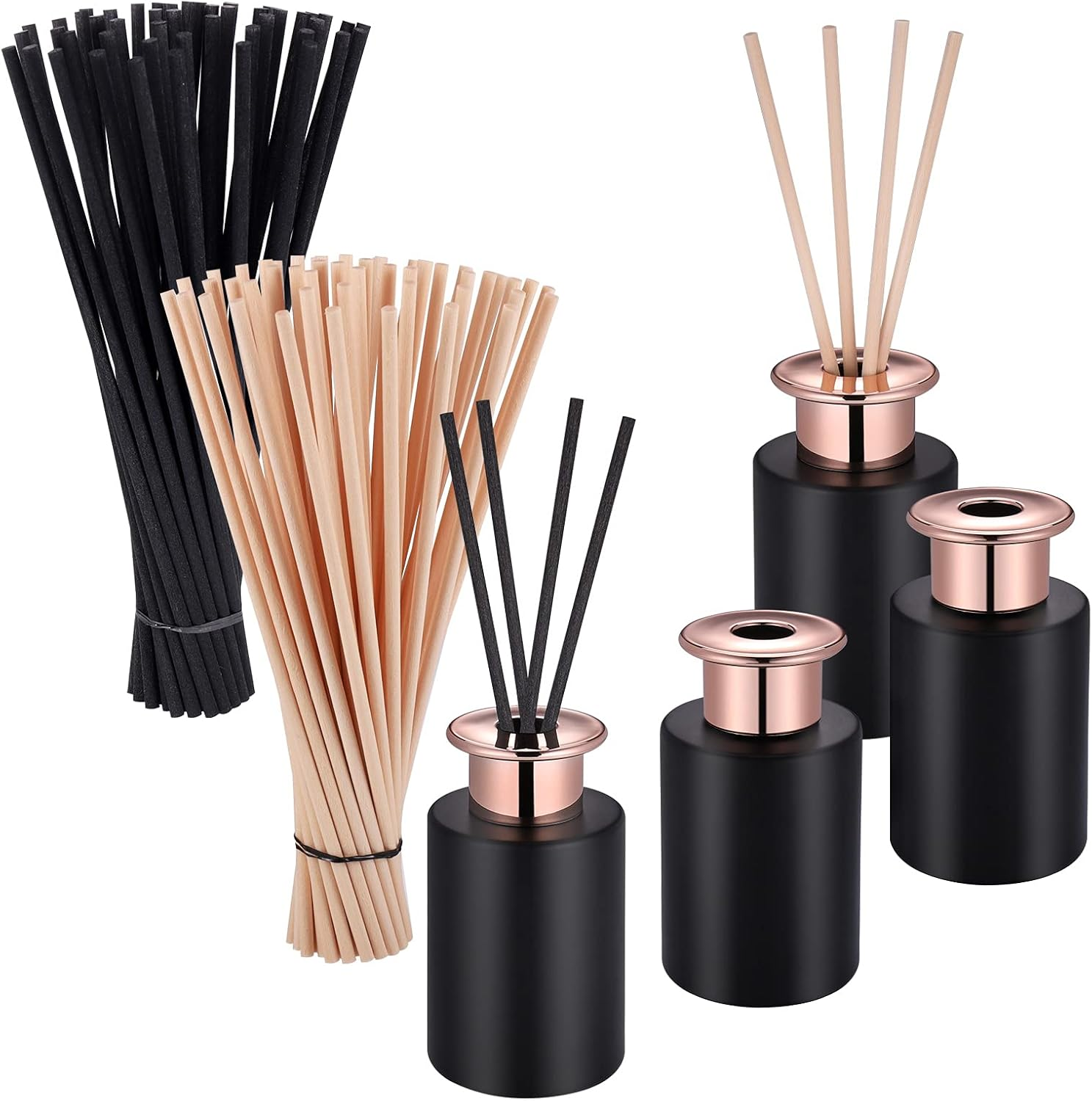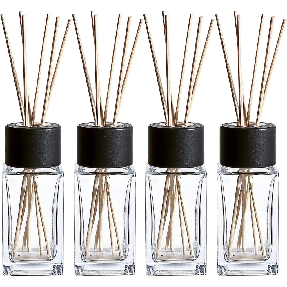 4 Pack Reed Diffuser Bottles Empty with Diffuser Reeds Sticks (50Pcs Black & 50