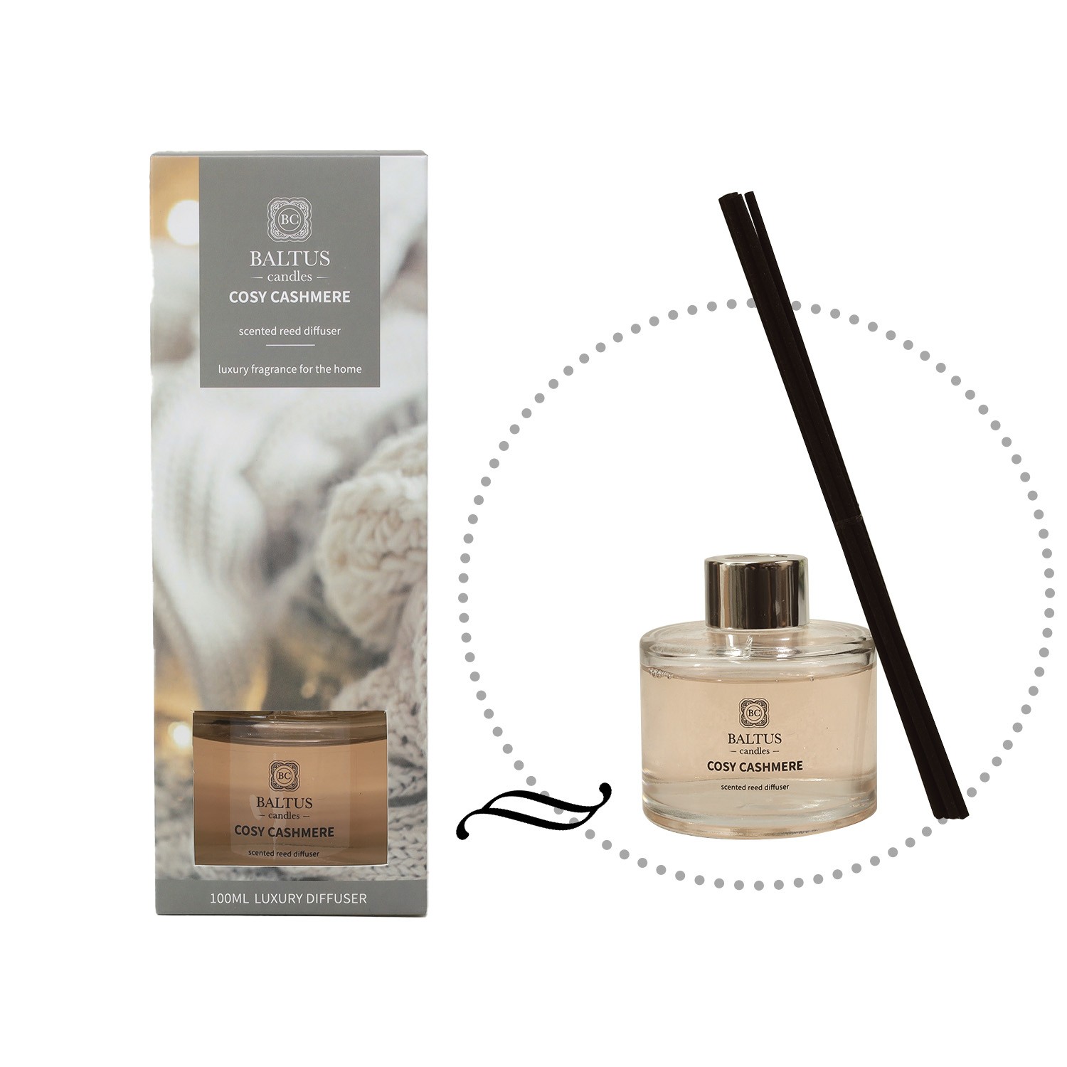 Baltus 100ml Scented 6 Reeds Diffuser Cosy Cashmere Air Freshener Fragrance