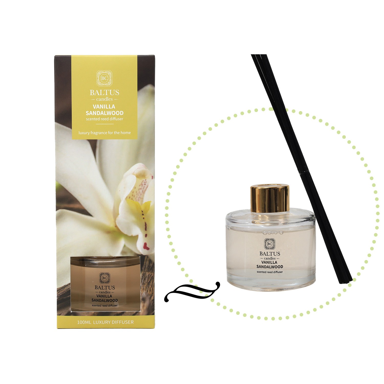 Baltus 100ml Scented 6 Reeds Diffuser Vanilla Sandalwood Air Freshener Fragrance
