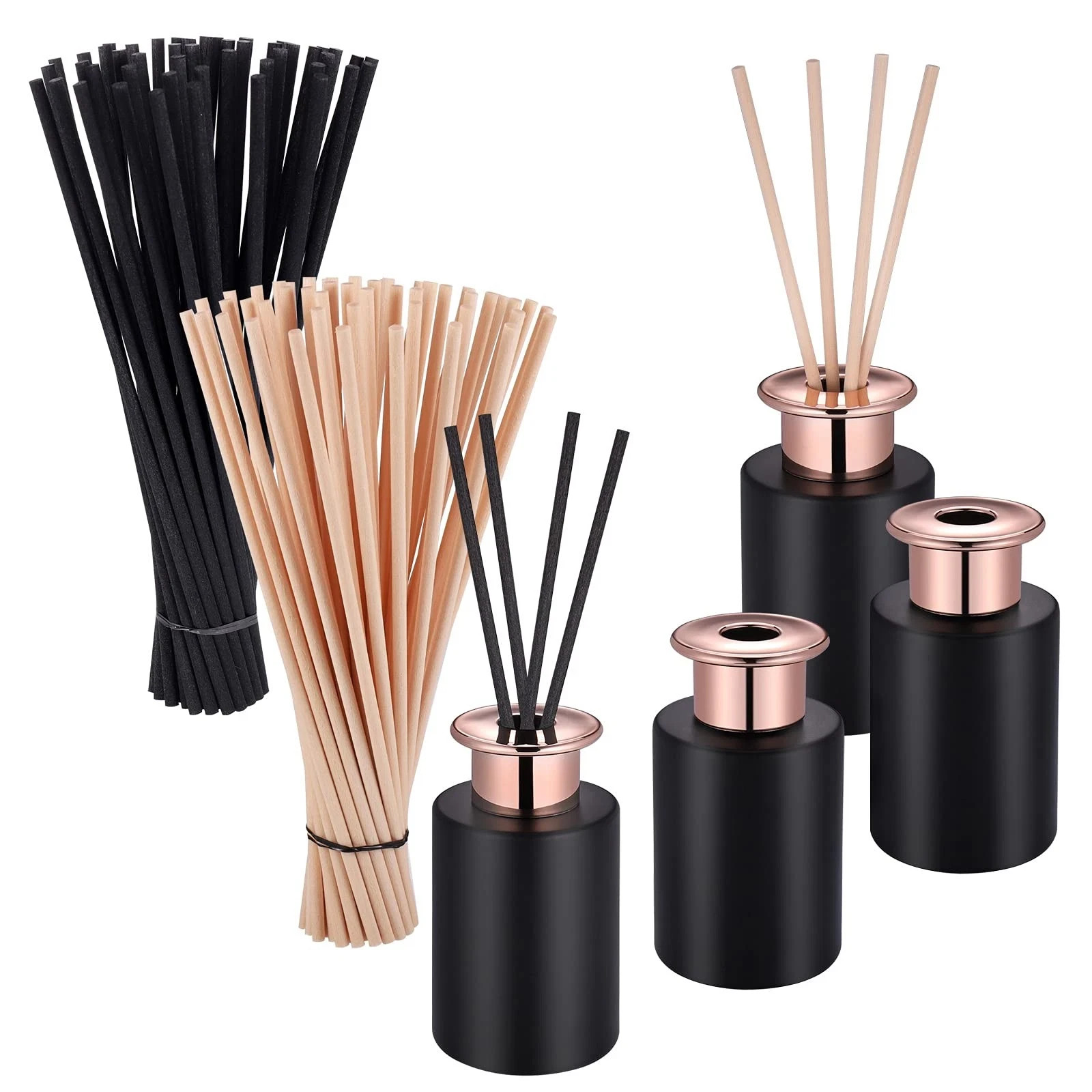 4Pcs 100ml Black Reed Diffuser Bottles Empty with Diffuser Reeds Sticks (50Pcs Black & 50Pcs Beige), Empty Diffuser Bottle with Diffuser Sticks,