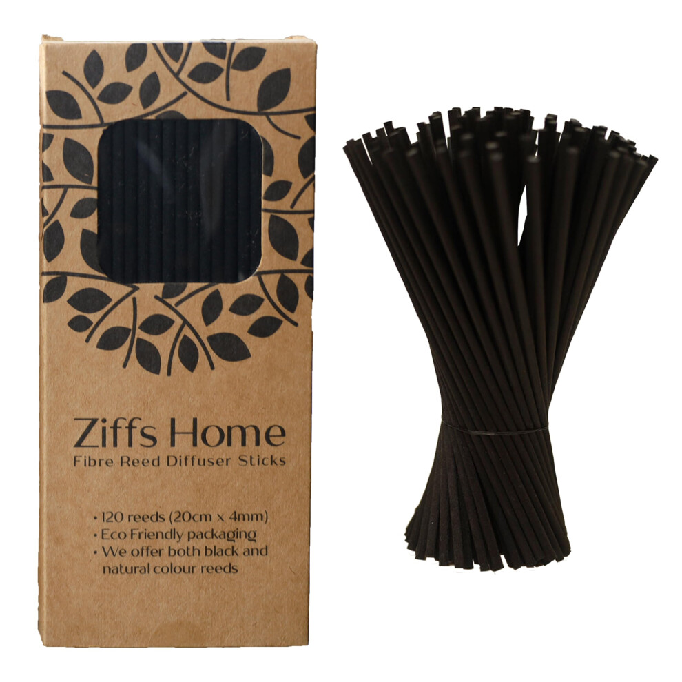 Ziffs Home® 120 Black Fibre Reed Diffuser Sticks - 20cm x 4mm - Thick Diffuser Reeds