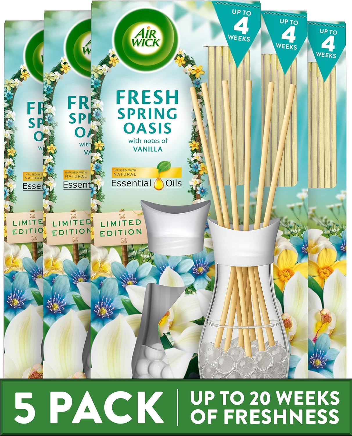 Air Wick Fresh Spring Oasis Essential Oils Reeds Diffuser 25Ml. Lasts for up to