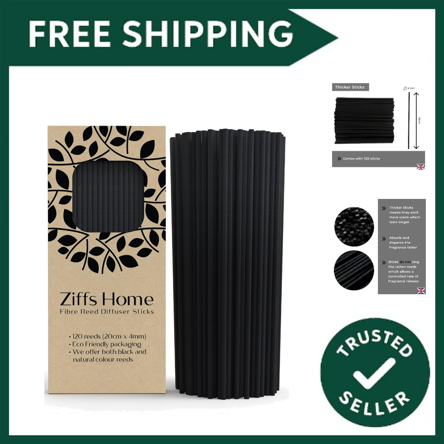 Ziffs Home 120pcs Black Fibre Reed Diffuser Sticks - 20cm/7.87in x 4mm/0.16in - Thick Diffuser Reeds Sticks - Diffuser Sticks for Diffuser O