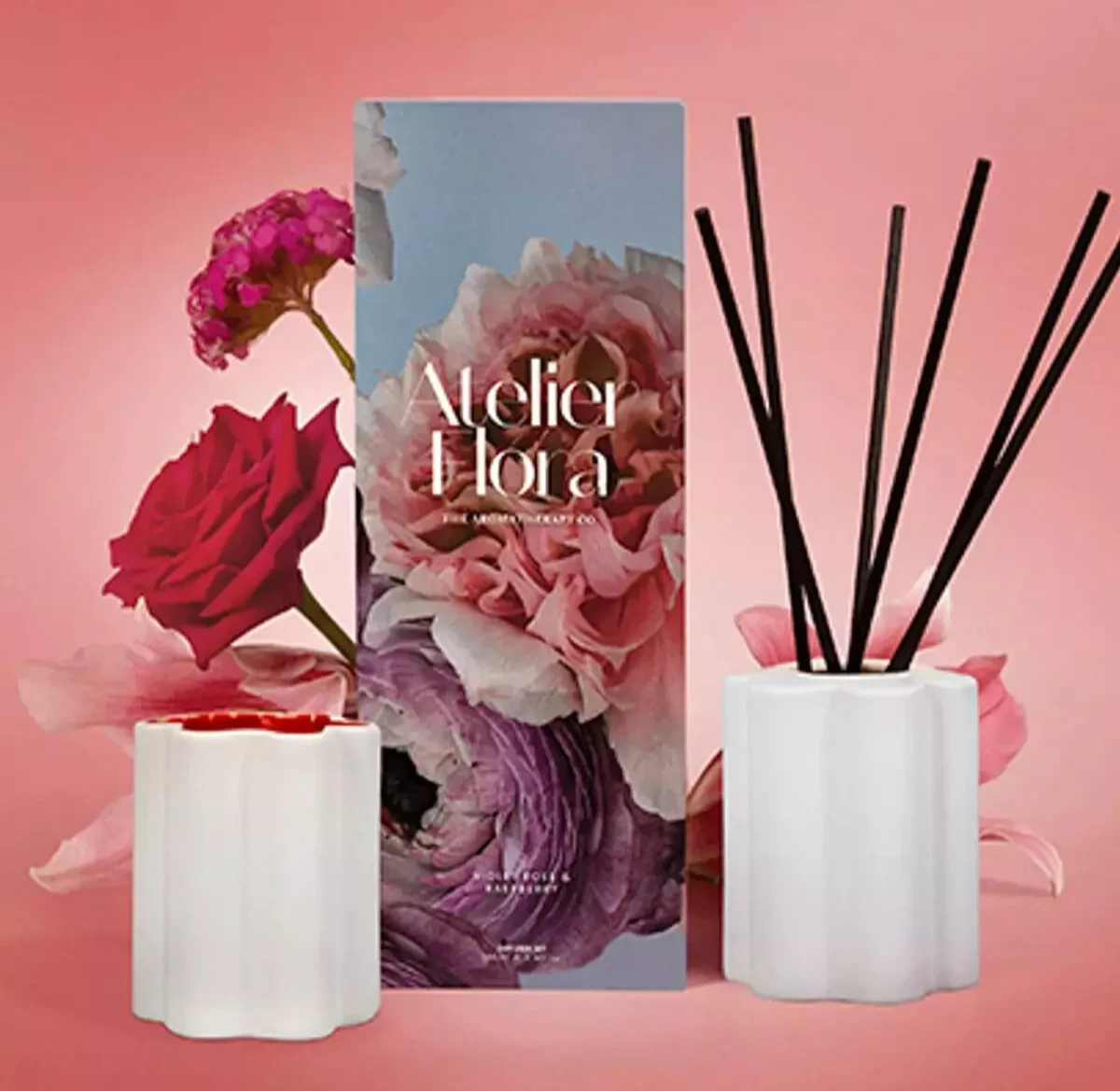 Atelier Flora Violet Rose & Raspberry Diffuser with Reeds & Flower Vase