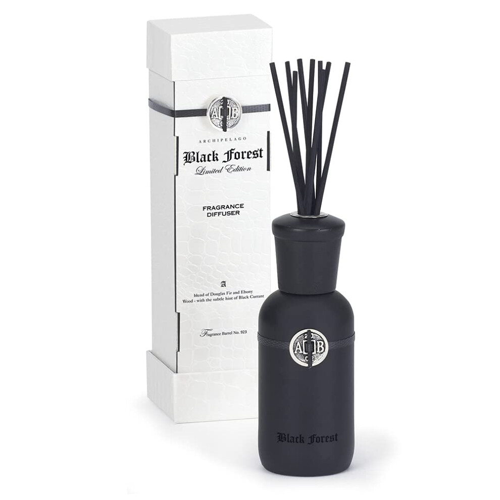 Archipelago Botanicals Black Forest Reed Diffuser, Home Fragrance Reed Diffuser, Includes Fragrance Oil, Decorative Wooden Cap & 10 Diffuser Reeds, Pe