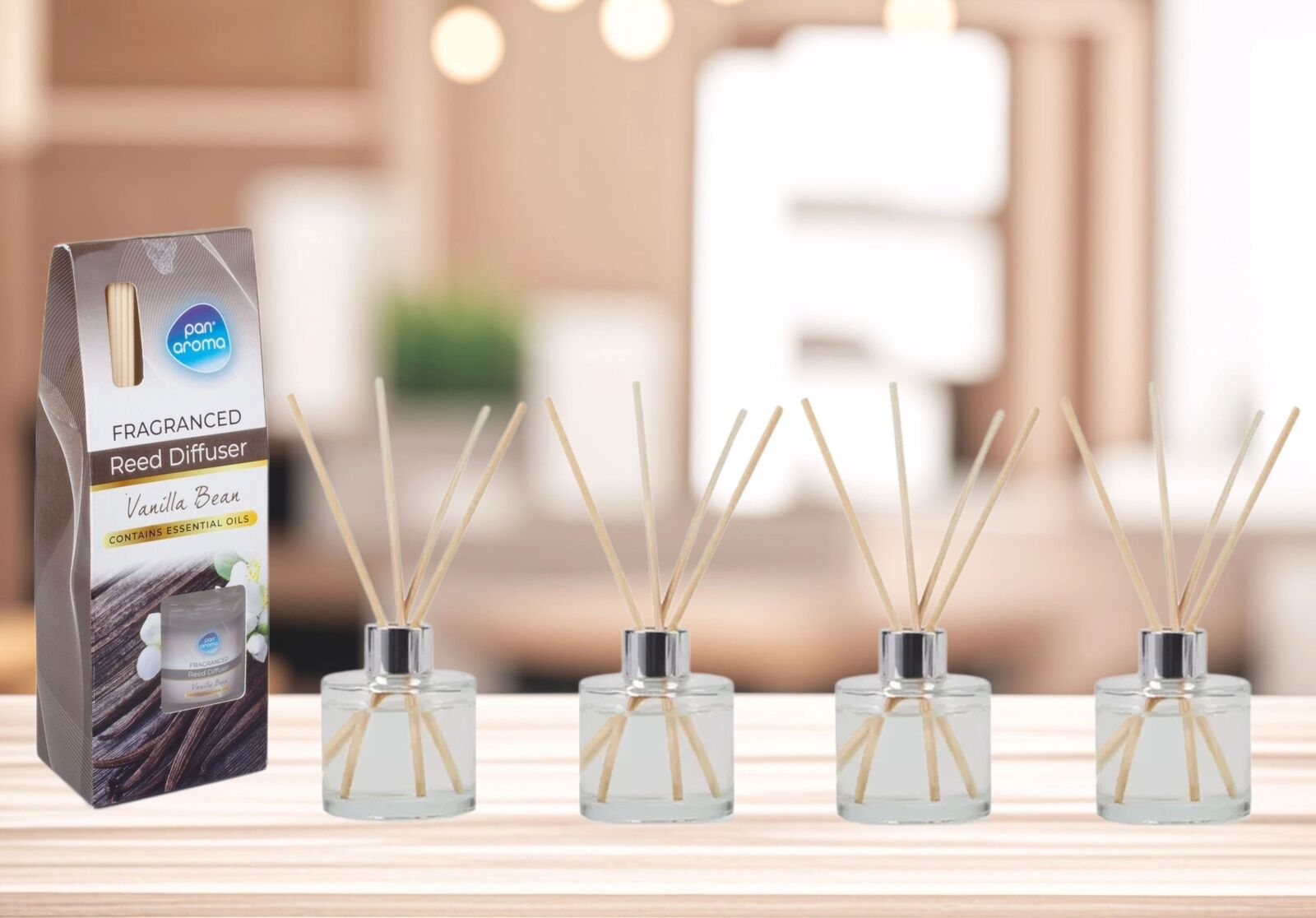 4 Vanilla Bean Scented Reed Diffusers Home Fragrance Essential Oils 30ml Bottle