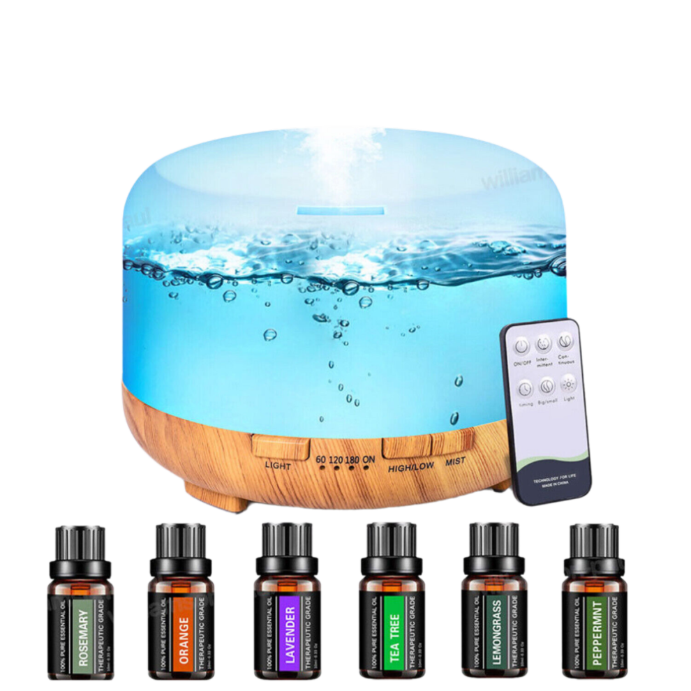 Oil Diffusers 500ML with 8 Essential Oils Set, Aromatherapy Diffusers Air Freshener,Essential Oil Diffuser with Remote Control, 4 Timer and Waterless